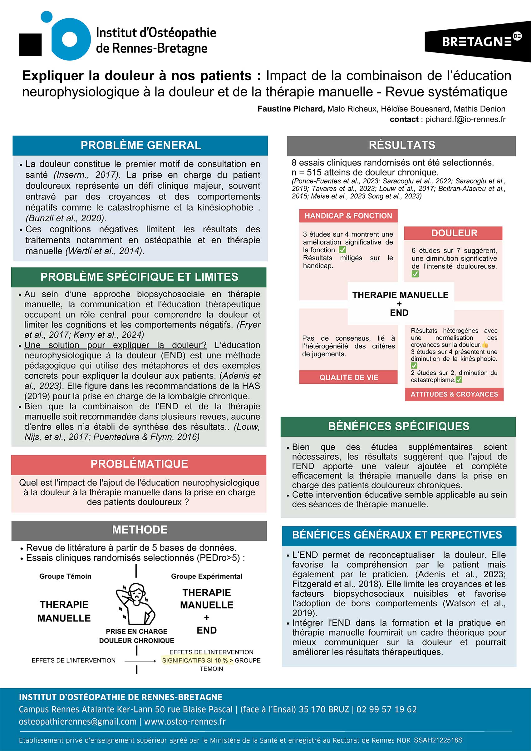 Ce travail de recherche, à la croisée des sciences de la douleur et de la pratique ostéopathique, illustre l’engagement de notre école d’ostéopathie à former des professionnels compétents, capables d’allier rigueur scientifique et approche humaine du soin.